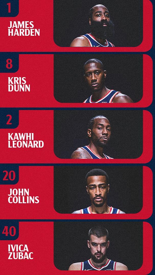 快船先发:伦纳德、科林斯、祖巴茨、邓恩、哈登!