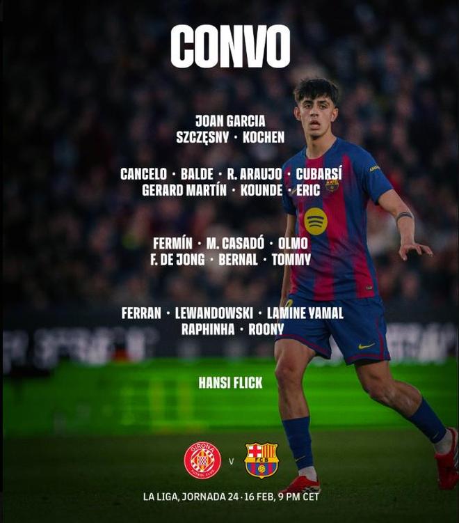 北京时间2月16日,巴塞罗那官方公布了明天凌晨4点客战赫罗纳的大名单,莱万、亚马尔领衔,拉菲尼亚回归。